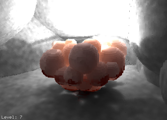Global photon map is too noisy to be directly rendered. Even if we emit more photons it is impossible to fill every single micro polygons in the scene, so we use a technique called Final Gathering. This could be done also by point-based, but at this time, I went to traditional way, ray-tracing which I shouldn’t have done. My problem at this point was the point cloud created by this step