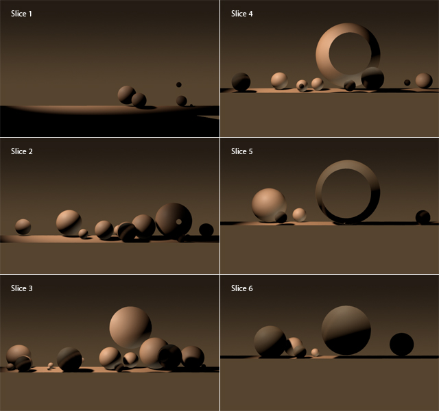 Since I'm using just camera clipping to slice, I can slice geometry too. Of course, this example scene is not heavy at all, so there is no reason to slice them. I just wanted to test if it works well for geometry.
